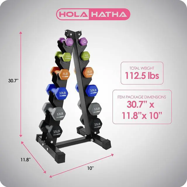 Compact Rack for Easy Storage: The sturdy, space-efficient rack is designed to hold the included dumbbells securely, making it ideal for small apartments, home gyms, or workout spaces with limited room.