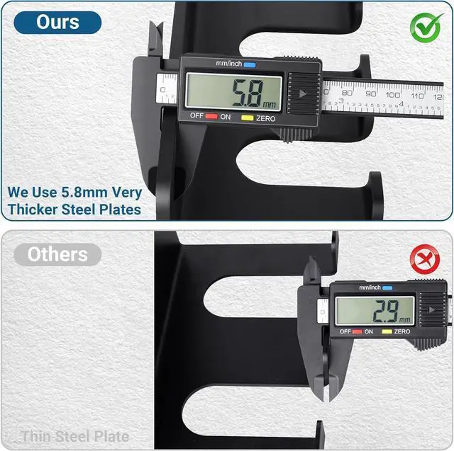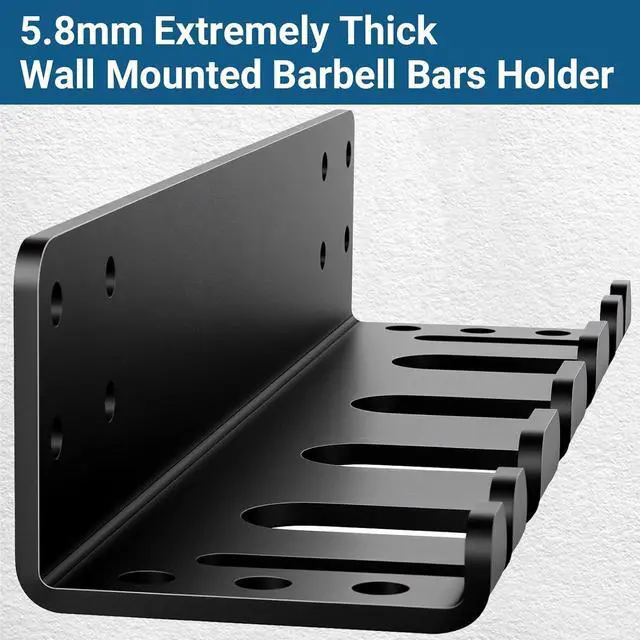 Heavy-Duty Steel Construction: Built with extra-thick 5.8 mm solid steel plate, this wall-mounted barbell holder is stronger and more durable than most racks made from thinner steel. The black powder-coated finish resists rust and scratches, ensuring long-lasting performance in home or garage gyms
