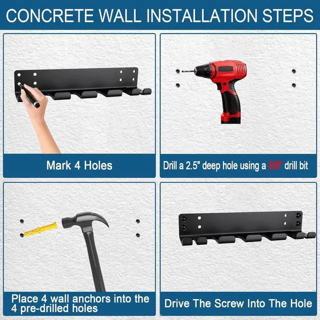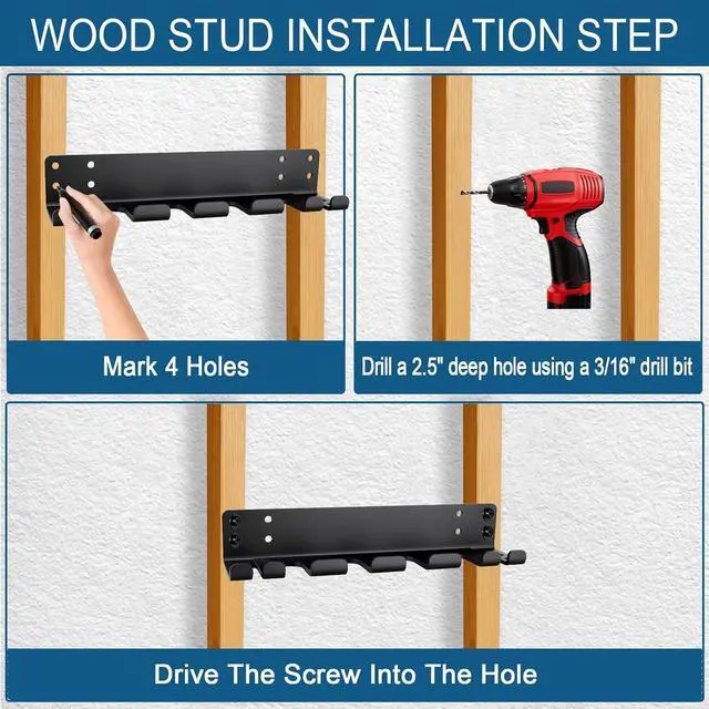 Quick & Secure Installation: Includes all necessary mounting hardware for wood studs or concrete walls. Pre-drilled hole spacing (12", 14", and 16" ) is compatible with standard wall studs. When properly installed, the rack supports up to 600 lbs of weight safely