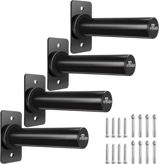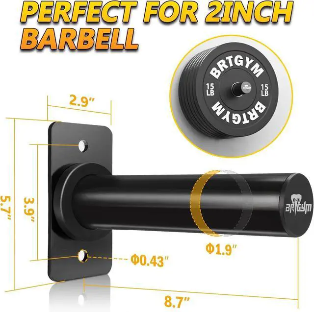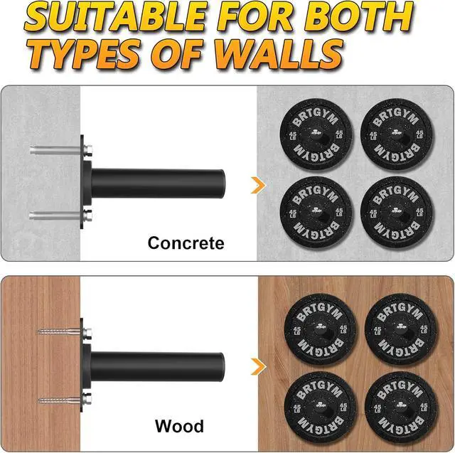 Load Limit: Solid Iron construction with rust-proof black paint finish. Support up to 275 lbs per holder, and maximum hold up to 3-4 pieces 45 lb weight plates
