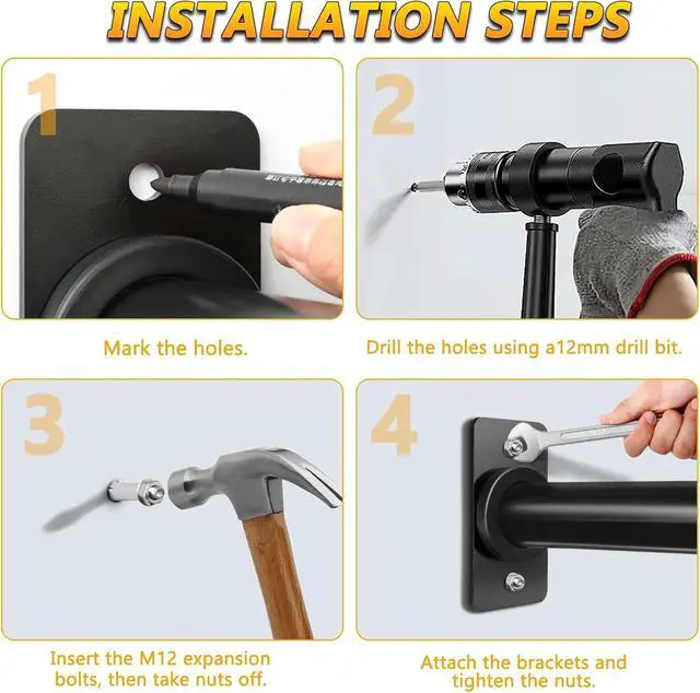 Easy to Install: Wall mounted weight rack includes 4pcs hanging posts, 8pcs wood screws for wood stud, and 8pcs expansion bolts for concrete.