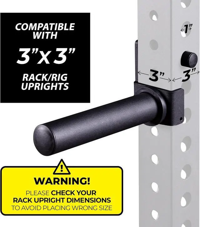 Inch Racks: Designed specifically to fit 3x3 inch tube racks with 1" holes, ensuring a perfect fit for your power or squat rack setup.