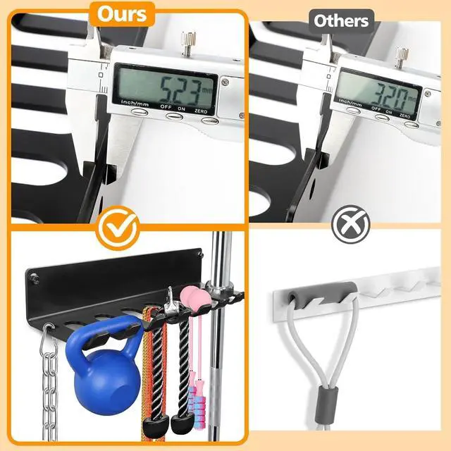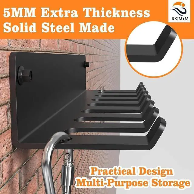 Space Saving & Organized: With 8 prongs, gym excercise workout wall mount organizer provides ample storage for lightweight accessories like resistance bands and jump ropes, keeping your home gym, commercial gym, garage gym tidy and clutter-free
