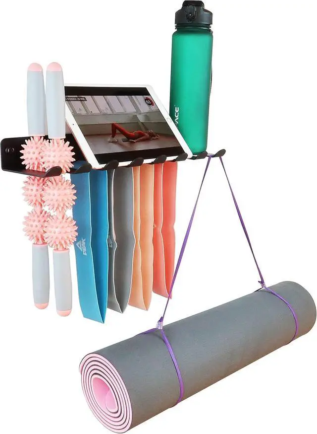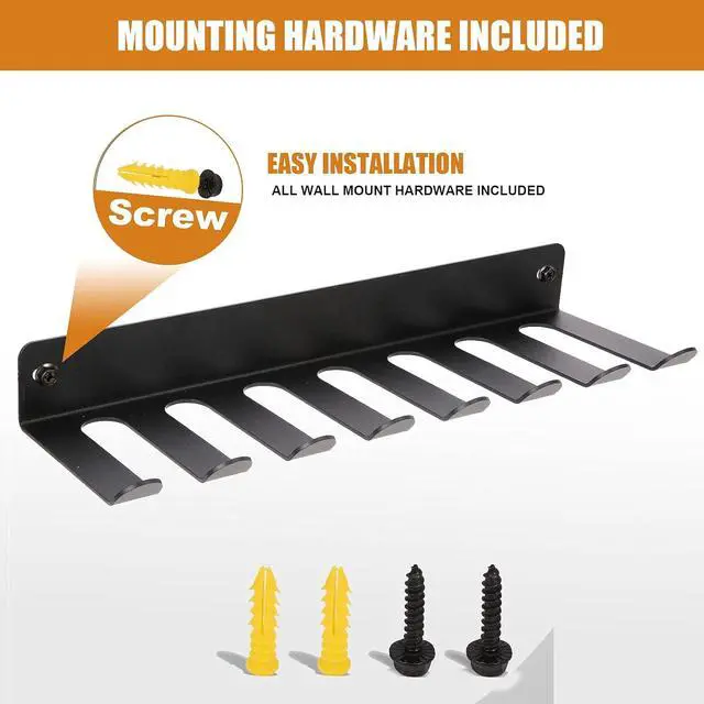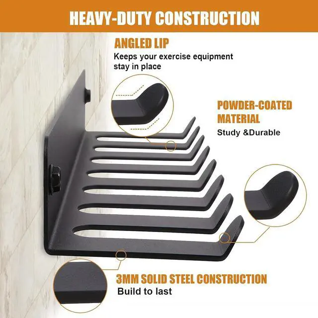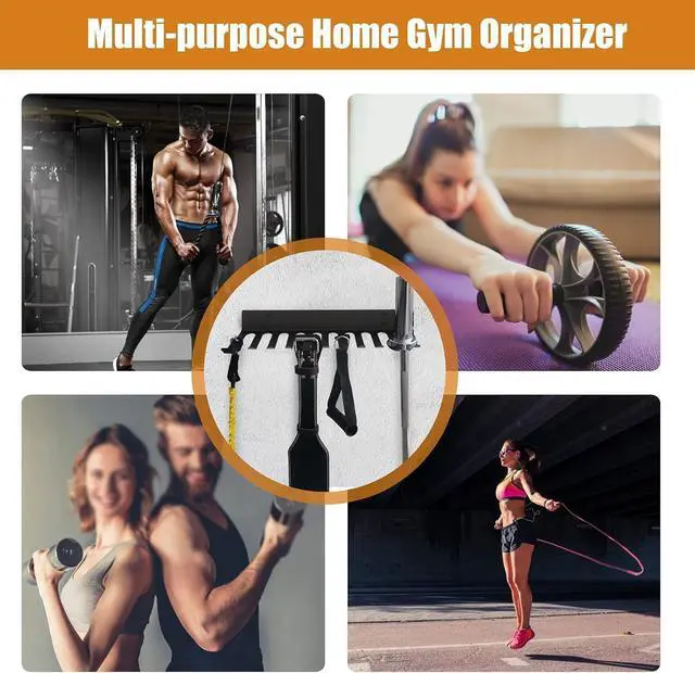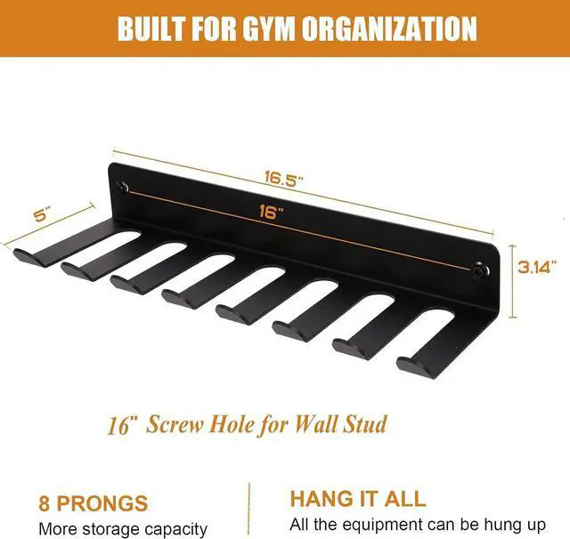 MULTI-PURPOSE STORAGE RACK-Say goodbye to messy home gym. It build to give a organized gym. Just let every work out accessories stay off your ground to leave more ground space. This gym hooks can holds barbell bar, resistant bands, lifting belts, dip belts, chains, jump ropes, gym bags, yoga mat and so on