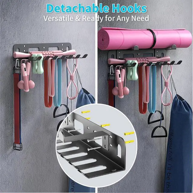 Removable Top Hooks for Versatility - Switch between two usage modes! Keep the 2 removable hooks attached for hanging yoga mats or Hula Hoop or remove them to accommodate larger equipmentadapts to your changing storage needs.