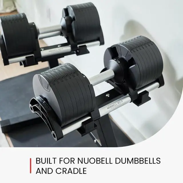Rubber Feet are Safe for Floors - Reduce scratches and marks. Just click, lock and lift. Replaces an entire free weight rack in one easy to use dumbbell stand. Perfect for Nuobell dumbbells.