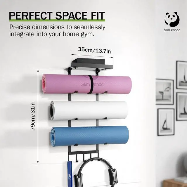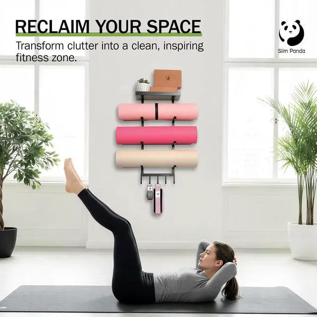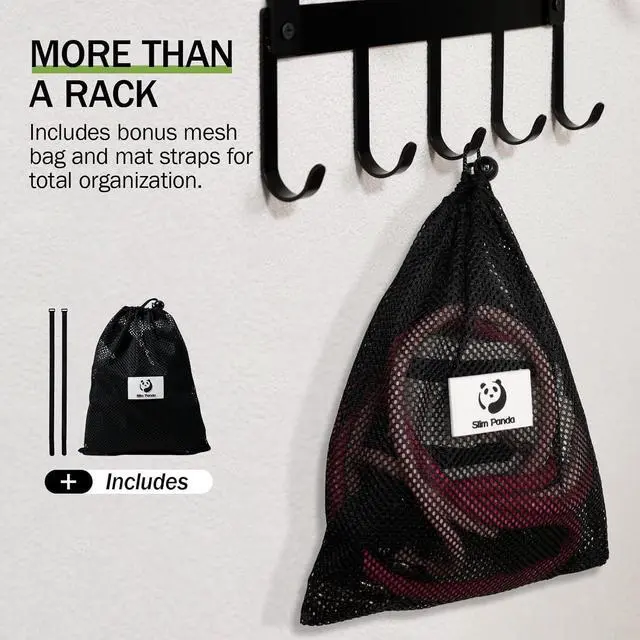Slim Panda Mesh Bag & Perfect Gift Choice: More than just a yoga mat hanger -- includes a Slim Panda multi-functional mesh bag and mat straps to keep your gear organized. Packaged in a professional box with the iconic Panda brand making this yoga mat storage rack to be an ideal gift for yoga enthusiasts, Pilates lovers, or anyone looking to level up their home workout space