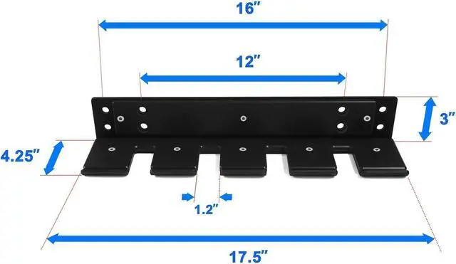 17. 52 x 4. 25 x 3 inch wall mounted barbell holder top: specially designed with a screw hole-to-hole spacing 2, 12 & 2 inches, Yes4All bar hanger is compatible with 12, 14 & 16-Inch wood studs