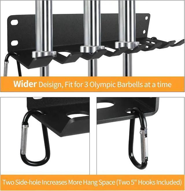 MULTI APPLICATIONS: The workout gear organizer holds up to 3 sets of Olympic barbells and most of the fitness equipment. Well organized Lifting belts, resistance bands, chains, Exercise bands, Jump ropes, Agility Bands, Foam Rollers, Wrist Wraps, weight vests, just keep them neatly stored without any need of floor space.