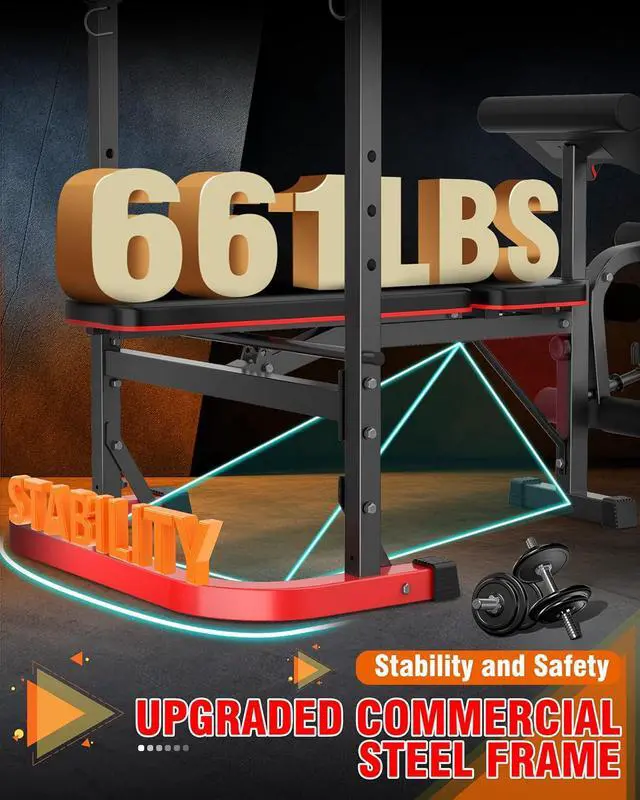 Sturdy and Stable DesignThe weight bench features a robust metal frame, ensuring overall structural stability. The U-shaped base design effectively lowers the center of gravity, reducing the risk of tipping. With a weight capacity of up to 660lbs, you can exercise safely. The rubber base at the bottom of the weight bench prevent slipping and protect the floor from scratches and wear.