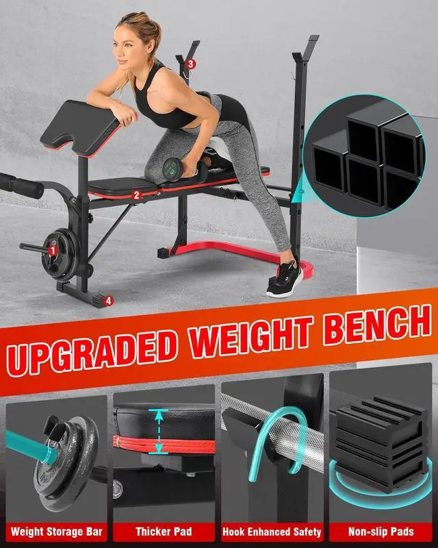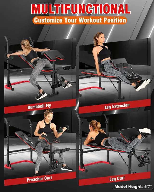 Full Body Workout BenchThe weight bench is a versatile piece of fitness equipment designed for beginners and users with smaller builds, which can help you work out your arms, chest, abdomen, and legs, allowing you to achieve a comprehensive workout at home.
