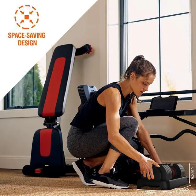 Save Money & SpaceIt is great for your upper body workouts, which helps tone and sculpt your arms, shoulders and also strengthen your muscles. The dumbbell also come with a tray for secure storage of your units, without devoting too much floor space, and keep your home gym well organized.