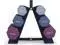 The dumbbells are color coded by weight so that they can be easily identified during a workout.