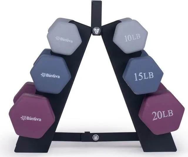 The Bintiva dumbbell is crafted from professional grade cast iron, and coated with non-slip neoprene to improve grip and protect the user.