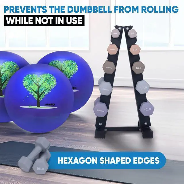 Hexagon shaped edges prevent the dumbbell from rolling while not in use.