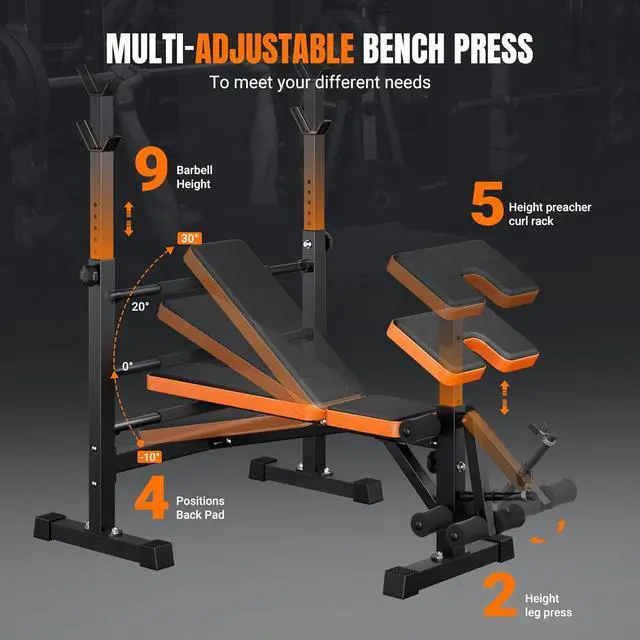 6 in 1 Multi-Function Exercise EquipmentYOLEO Weight Bench combine leg extension, preacher curl, adjustable bench press & squat rack in one space-saving unit - perfect for full-body workouts from strength building to core conditioning. Works with every bar, dumbbell or band for 50+ exercises (goodbye single-use equipment)