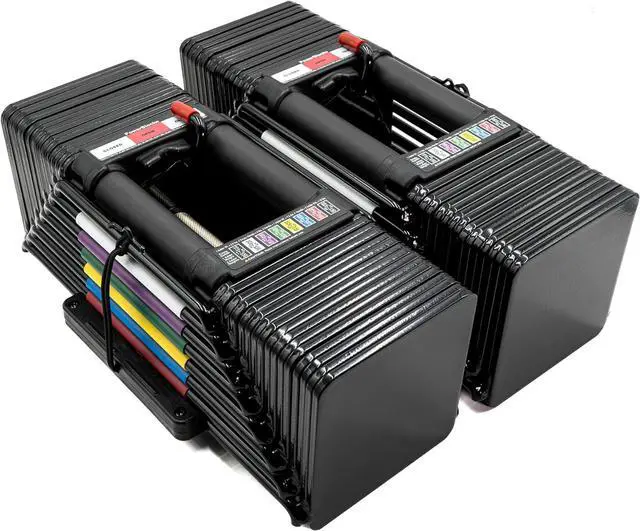 ADJUSTABLE DUMBBELLS SET: Elevate your fitness and performance with strength-training equipment that adjusts with you. These PowerBlock dumbbells have a range of 5-90 pounds per hand, a knurl grip grip handle, and easy weight identification.