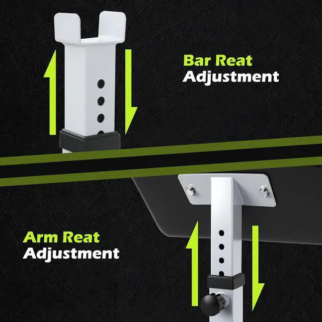 Fully Adjustable--Designed to fit any size user with adjustable arm rest and barbell rack, make our weight training bench accomodate to different workout needs easily.