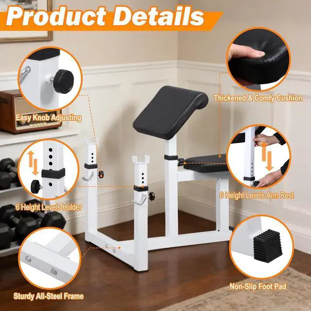 Heavy Duty Structure--JungleA preacher curl bench feature a heavy duty steel frame, together with sturdy construction for maximum stability and durability.
