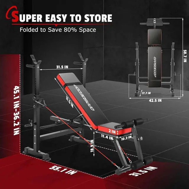 Comfortable Padding & Foam2" thick cushion, upgraded backrest, and seat made of PU leather and filled with soft & thick foam padding; Allow you do any exercise with a very comfortable feeling. The Widened barbell rack is extended to 31.5 inches to meet your need.