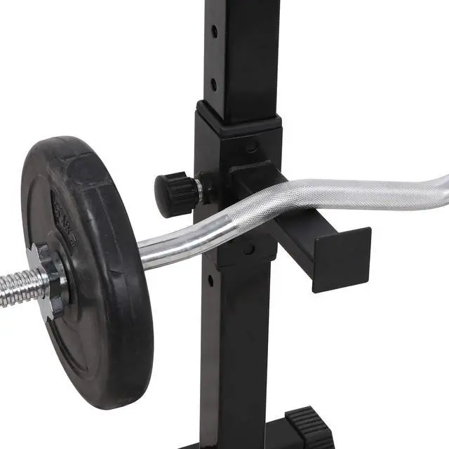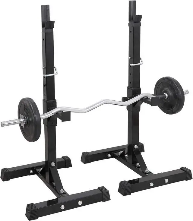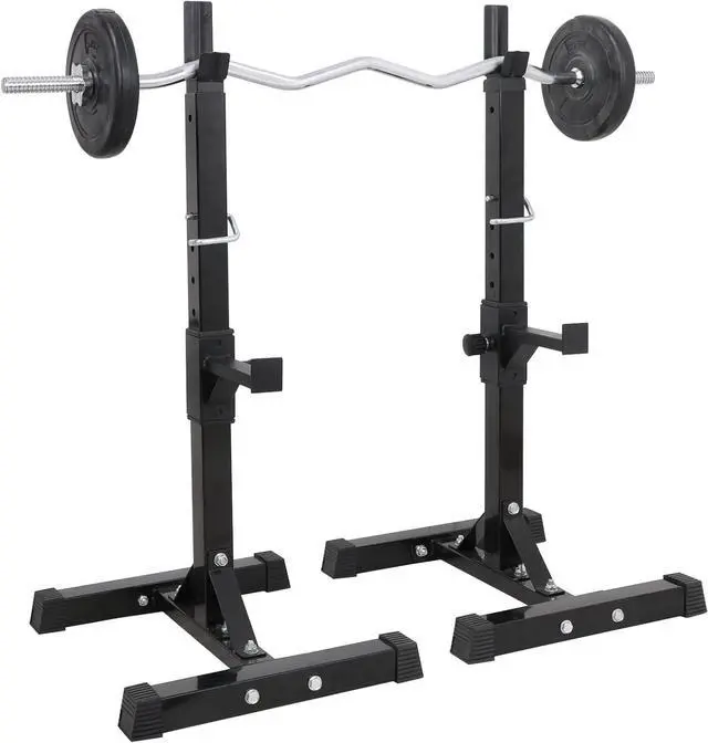 Height AdjustableThe barbell rack' s adjustable height ranges from 41 to 66 inch, suitable for a variety of heights, and adjustable spotters for your safety with 14 positions