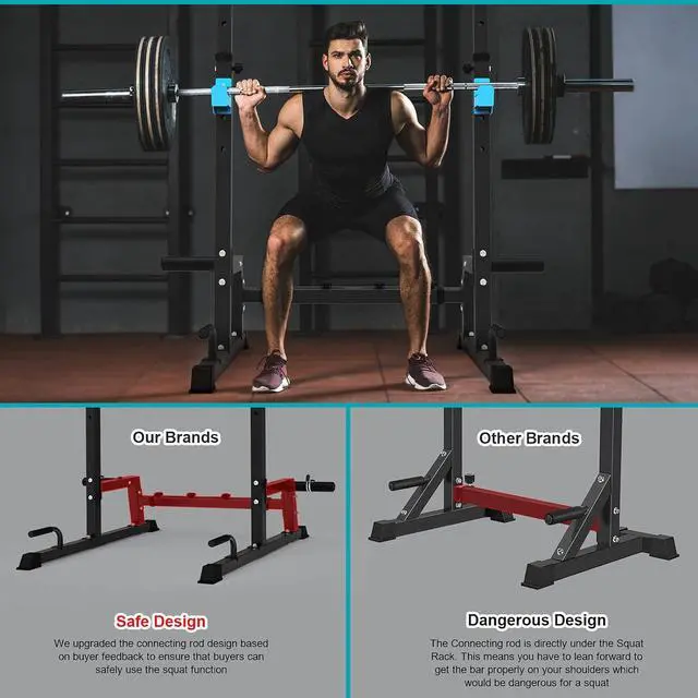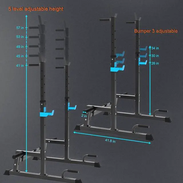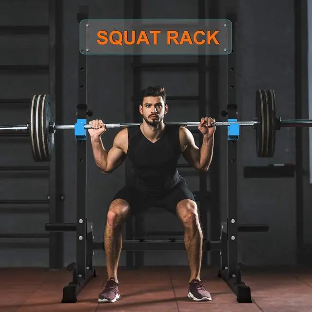 GREAT ADDITION TO THE HOME GYM --- As a adjustable squat rack, it can collocate with other fitness equipment such as weight benches, barbells perfectly. The perfect addition to your home gym,