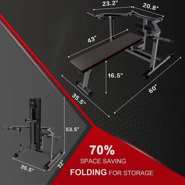 Space-SavingThe strength training equipment can be easily folded up, so it can save more space. When you finish workouts, just plug the long spike to lift the seat frame, you could simply put it in the basement or move it to the corner of your home or office. Compact but stable exercise machine brings you with health and strong.