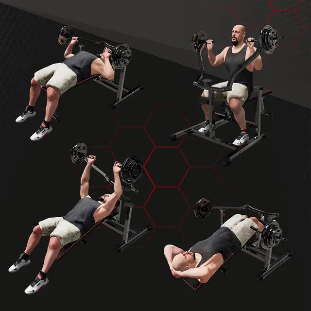 Multi-FunctionOur exercise bench is designed for multi-purpose workouts, such as flat and incline bench press, leg extension and curl, chest press and expansion, AB crunch and so on. With a dumbbell rack, weightlifting exercise is also allowed. So you can strength your arms, legs, abdominal and chest. It a perfect and efficient exercise equipment for your daily workouts.