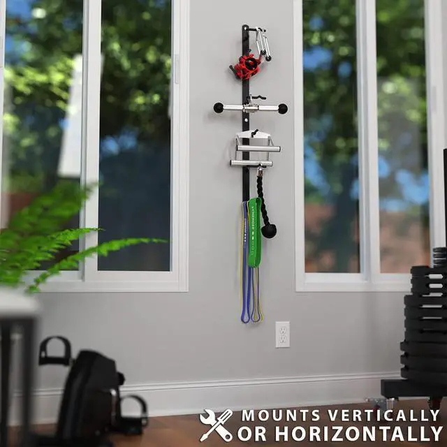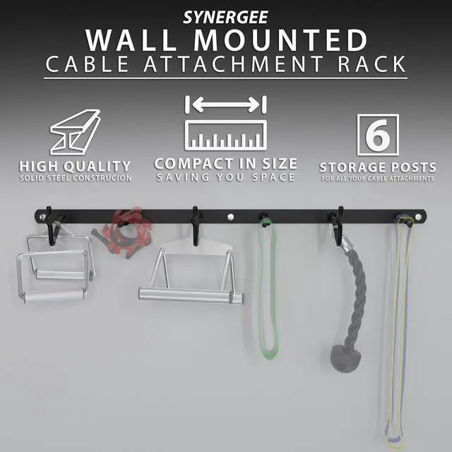 ORGANIZE YOUR CABLE MACHINE HANDLES Finally, a space to put your Cable Attachment Handles! This Rack is perfect for a wide range of Pulley Machine Handles Lat Bars, D-Handles, Straight Bars, V-Bars, Tricep Ropes, and more. If theres more Storage Pegs than you have Handles, throw those collars, mini bands, and other lightweight accessories on there, too. This Rack makes it convenient to have a wide range of Handles and encourages you to enjoy the variety your Cable Machine offers!