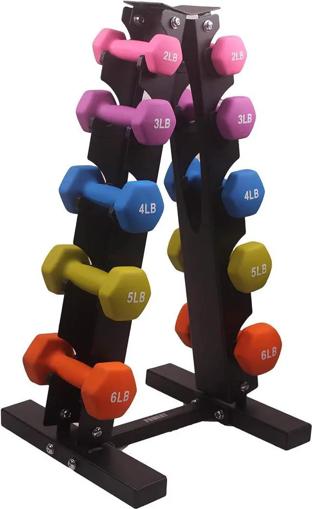 Color-coded for different weight, easy to identify; Hex shape prevents dumbbells from rolling away.