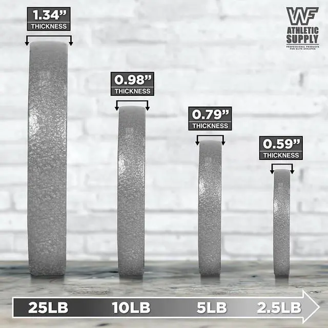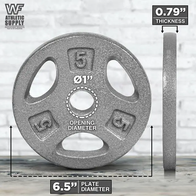 CHOICES - WF Athletic Supply cast iron 1-Inch standard grip plates are available in 2.5, 5, 10, and 25 lb weights; Each weight has easy handle grips to make moving, loading and storage smooth. Increase muscle strength with regular use, be flexible combination.