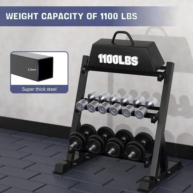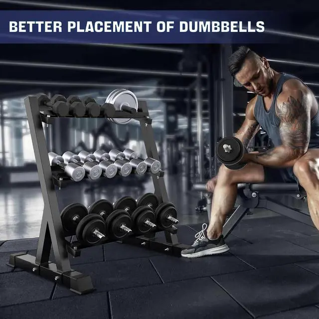 COMPACT 3-TIER DESIGN - The ergonomic compact design with angled tiers saves space while keeping weights organized and accessible.