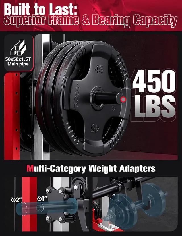 Built to Last: Constructed with commercial-grade 2-inch thick steel tubing, the frame provides an unshakable foundationfar surpassing typical home gym wobble. With a massive 450 lb weight plate capacity, this cable machine is built to handle intense, heavy-load training safely and durably.