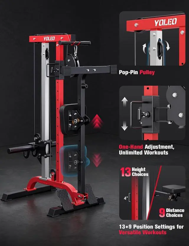 Dual Precision Adjustment System: Tailor every workout to your biomechanics. The main tower offers 13 height positions for perfect pull-down angles, while the horizontal seat features 9 adjustment points. This dual system, combined with our smooth-gliding pulley system for home gym, ensures optimal form and muscle targeting for every user.