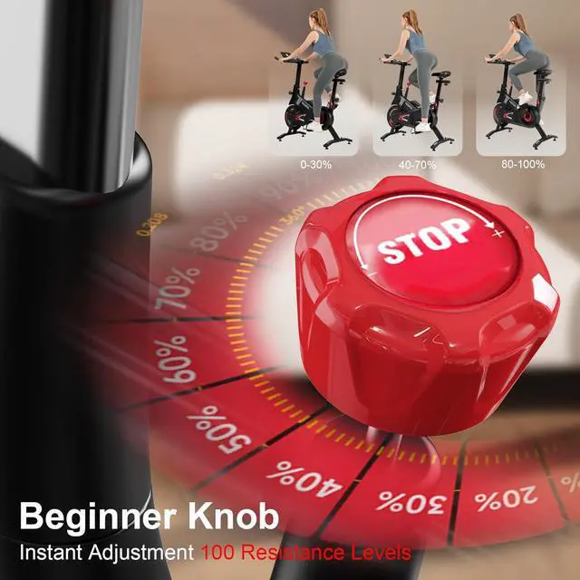 100-Level Silent Magnetic Resistance Train Anytime Equipped with 100 adjustable levels of magnetic resistance, this bike allows you to fine-tune every ride to match your fitness goals. The whisper-quiet belt drive system ensures smooth and silent operation, so you can work out early in the morning or late at night without disturbing family members, neighbors, or roommates. From gentle recovery spins to high-intensity hill climbs, this home exercise bike delivers a versatile and customizable training experience that grows with your progress
