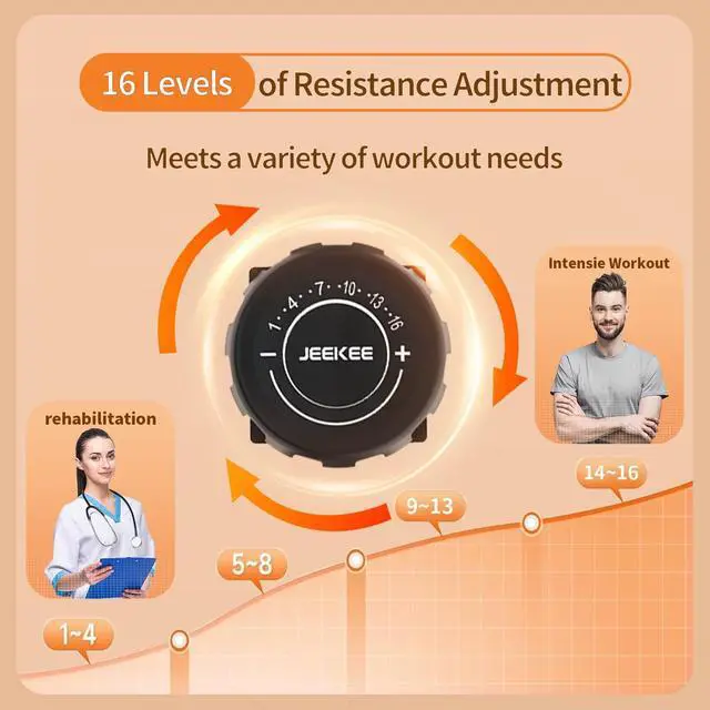 16 Levels of Quiet and Smooth Magnetic Resistance: 16 lb. magnetic flywheel adjusts to 16 levels of resistance to ensure that most of your needs are met. Quiet training under 5 dB won' t disturb your family and friends. Levels 1-4 are for warm-up and recovery training, Levels 5-8 are for aerobic workouts, Levels 9-13 are for muscle sculpting, and Levels 14-16 are for intensive training.
