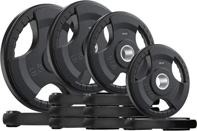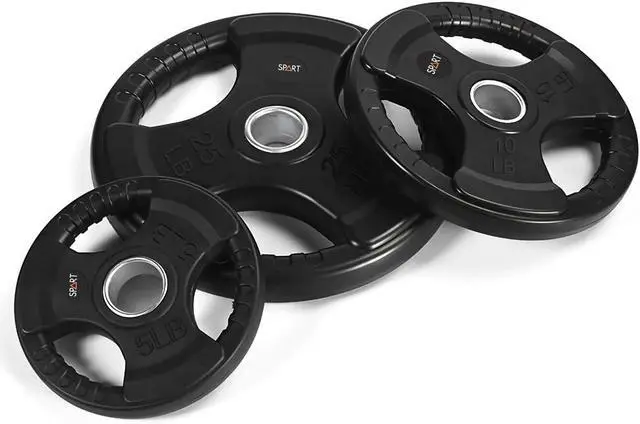 FEATURE: SPART weight plates have a solid iron core and slide rubber surface. This design can protect the floor from damage and ensure enough weight when you do exercise. The strong steel ring insert can help you assembly the barbell easily. The three holes are designed for grip according to your hands and you can do weightlifting exercise with single plate as well.