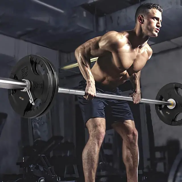 UPGRADE MATERIAL: The quality of our rubber weight plates are durable and sturdy. It is safer and more practical to drop and lower after a lift exercise. The comfortable grip also give you a good use experience.