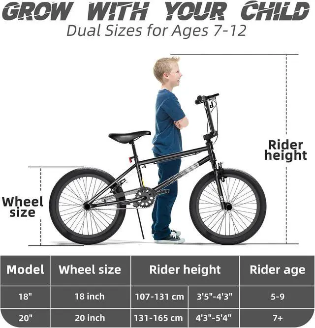 Kid-Focused Compact Frame for Riders 8-14 - This 20-inch BMX bike features an upgraded compact frame tailored for children and teens, with a suggested rider height of 4' 0' ' - 4' 8' '. Designed to fit growing riders, it supports comfortable exploration of streets, parks, and trails for young enthusiasts.