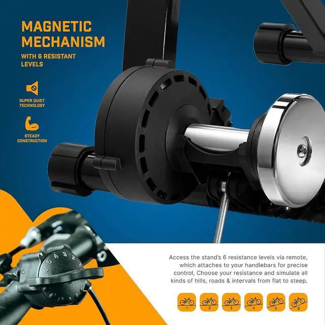SUPER QUIET MAGNETIC TECHNOLOGY High-quality flywheel mechanism creates drag against tire to replicate real cycling experience Built-in super noise reduction eliminates whir, while reduced friction extends the life of your bike