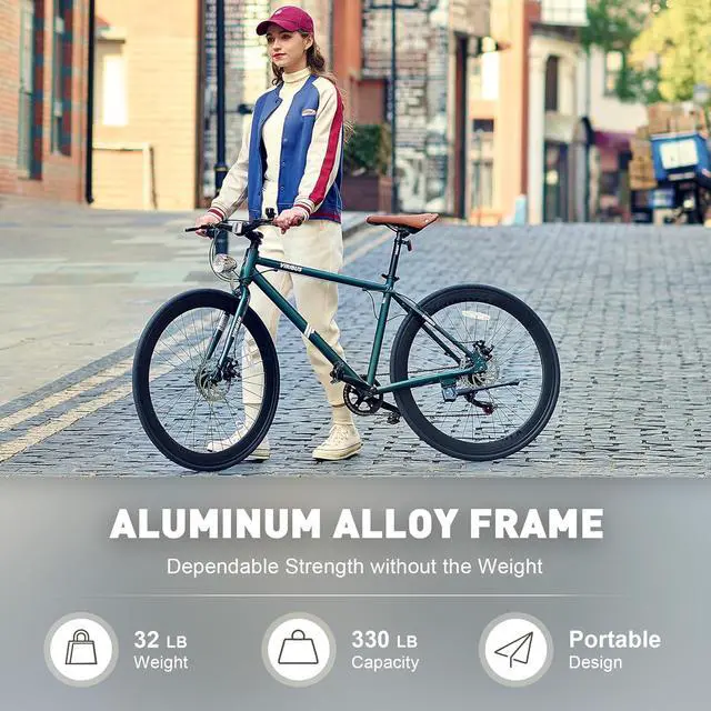 Lightweight Aluminum Frame: Have a great time on our lightweight city bike! It' s durable with a corrosion resistant aluminum alloy frame that can carry up to 330 pounds, making every ride safe and fun