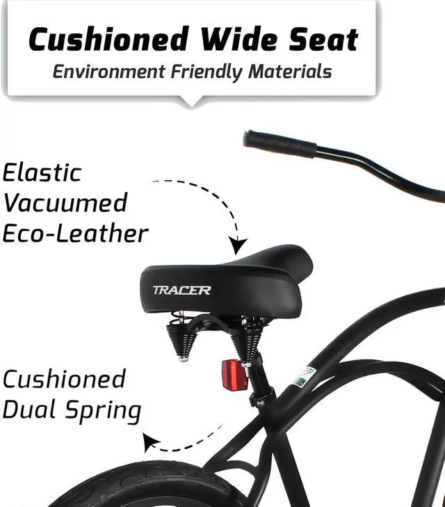 Beach Cruiser Bike: The TRACER ACE is a beach cruiser bike designed for men and women who love cruising around cities or the beach. It has a comfortable seat and a durable frame, perfect for everyday use.