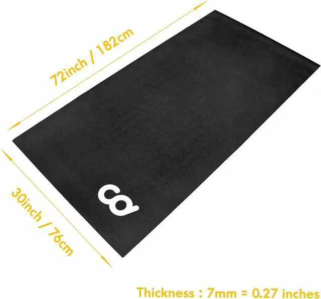 APPLICATION: SIZE - 30" x 72" / 76.2 cm x 182.88 cm - Soft version. Made of all-new material with 7mm thickness PVC, soft new PVC without odour. This mat is great for heavy spin bikes, treadmills, recumbent bikes, rowers, steppers, upright and stationary bikes, and other cardio exercise units that can protect your carpet or floor from dirt, vibrations, and tear.