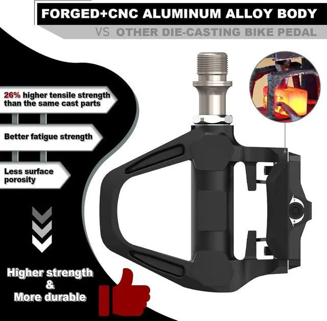 Excellent Power Transfer: Road bike pedal is made of lightweight nylon material, with average weight of only 272g/pair. Stainless steel body palte create a hard-wearing cycling pedal. Large platform area lets you be one with your bicycle and improves pedaling stability and efficiency of power transmission