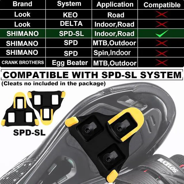 Perfect Compatible: BUCKLOS Road bike Pedals compatible with all Shimano SPD-SL systems, you can use Shimano SPD SL cleats on these pedals, Standard 9/16" axles fit for cranks of most road bikeideal for your racing, indoor training, commuting, long &short distance travel
