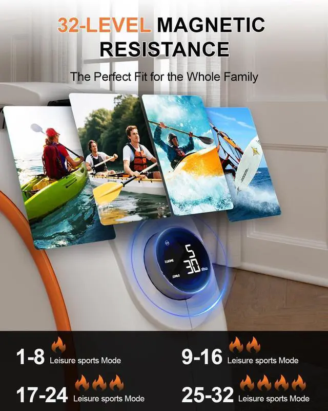 Adjustable ResistanceThe resistance levels are designed with 32 settings(Levels 1-8 for leisure exercise, 9-16 for aerobic exercise, 17-24 for shaping, and 25-32 for muscle maintenance). Different resistance levels can meet your various fitness needs, helping you burn more calories