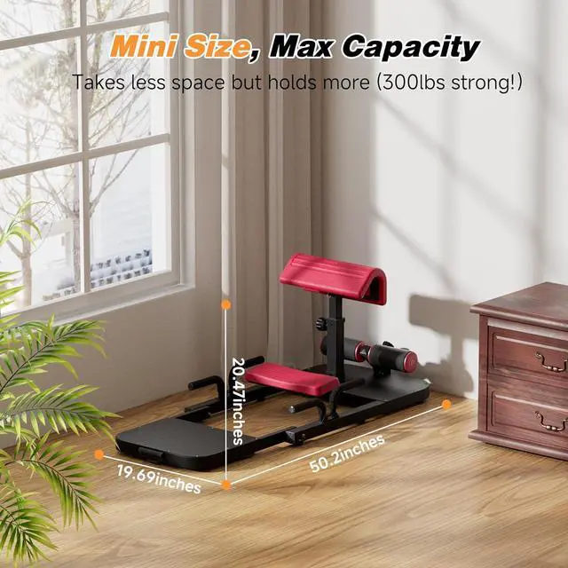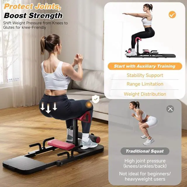 HEAVY-DUTY DESIGN - Our stable Metal Squat Machine boasts load capacity of 350 lbs, made with durable steel frame and equipped with non-slip foot pads; Its solid construction ensures handles intense workouts for experiencing stretching, sissy squats and hip thrust with confidence