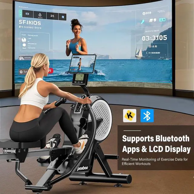 Bluetooth Connectivity with App Smart Compact Full Motion Rowing Machine for Home is equipped with a professional performance monitor that delivers accurate workout data and connects to the KINOMAP APP via Bluetooth. Immerse yourself in the splash, and feel like nature even when rowing at home.