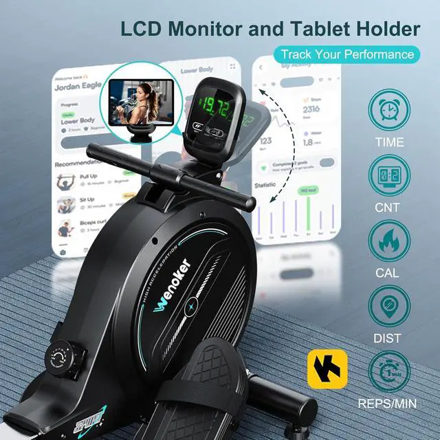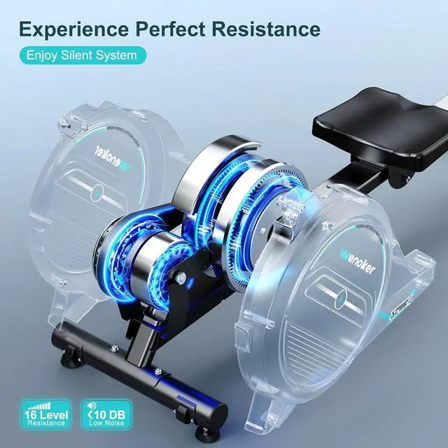 [Smooth & Quiet Magnetic Resistance] Wenoker rowing machine is equipped with an advanced magnetic resistance system. With noise levels <30 DB, you can enjoy rowing quietly without disturbing your family or neighbors. It stays stable and never wobbles even when using it with high and constant resistance. Unlike not much friendly air and water resistance rowers: only the faster you pull, the more resistance they provides.