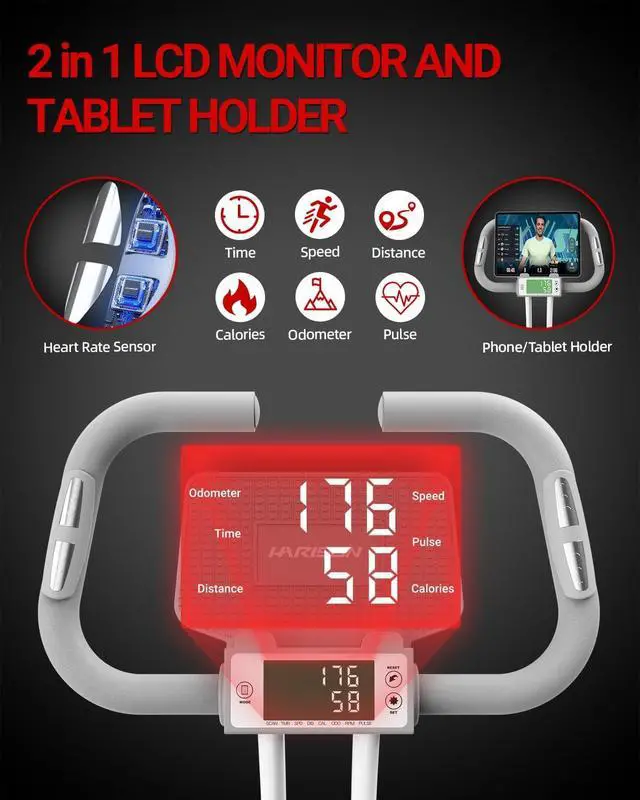 Tablet Holder: The built-in LCD monitor of this stationary bike for home can track your real time exercise data such as time, speed, distance, calories burned and odometer. The tablet holder allows you to watch workout courses or entertainment videos while riding